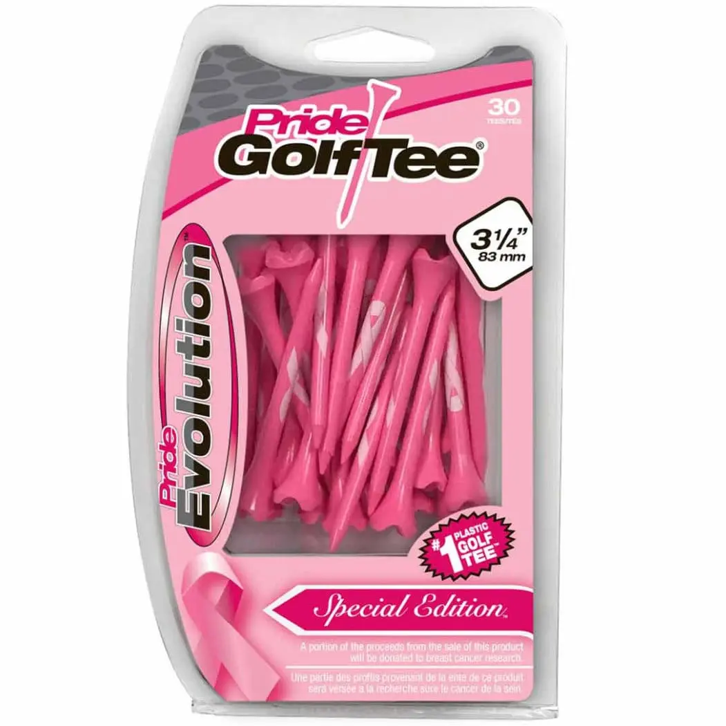 - Pride Evolution is a plastic performance tee engineered with special low-resistance tips that create less friction between the golf ball and tee – resulting in longer drives.